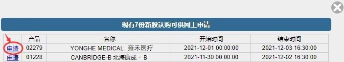 从列表选择欲认购之新股并点击「申请」。