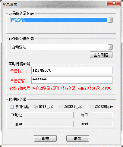 3、《行情帐号》:若已购买港股实时行情,请在这里设置行情帐号、密码,若登录的交易账户已绑定实时行情帐号,则在此处无需设置。