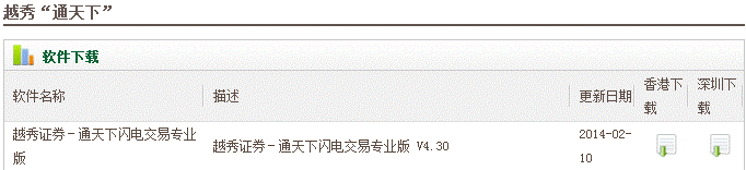 在使用通天下闪电交易系统之前,首先需要下载安装闪电交易客户端,请访问越秀证券网站 www.yxsh.hk,进入快捷通道→下载中心→交易软件下载,选择合适的下载地区安装程序。