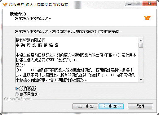 运行已下载的安装程序,注意须选择’同意’授权合约,如下图所示: