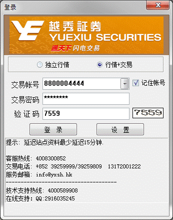 注意:此账户及密码是客户购买了通天下包月港股实时行情服务后,获取的实时行情服务账号及密码,与港股交易账户、交易密码无关。